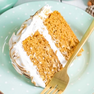 I paired the cake with homemade marshmallow fluff as frosting to keep it similar to the traditional Thanksgiving dish.