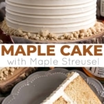 This Maple Cake is packed with pure, natural maple flavor throughout. Maple cake layers with a maple buttercream and maple streusel.