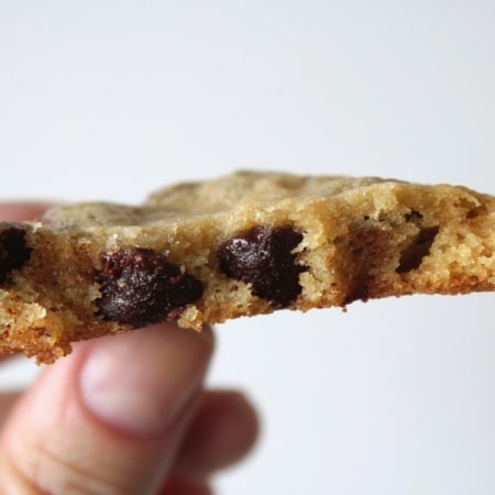 Instead of regular old table salt I use sea salt. The chunks don’t dissolve in the cookie dough, which means that each cookie will have a crunchy bit of salt in it. The salt brings out the taste in the cookies and makes them amazing. If you don’t like crunchy bits of salt in your cookies, then by all means, use the plain old table salt and settle for less-than-perfect cookies :).